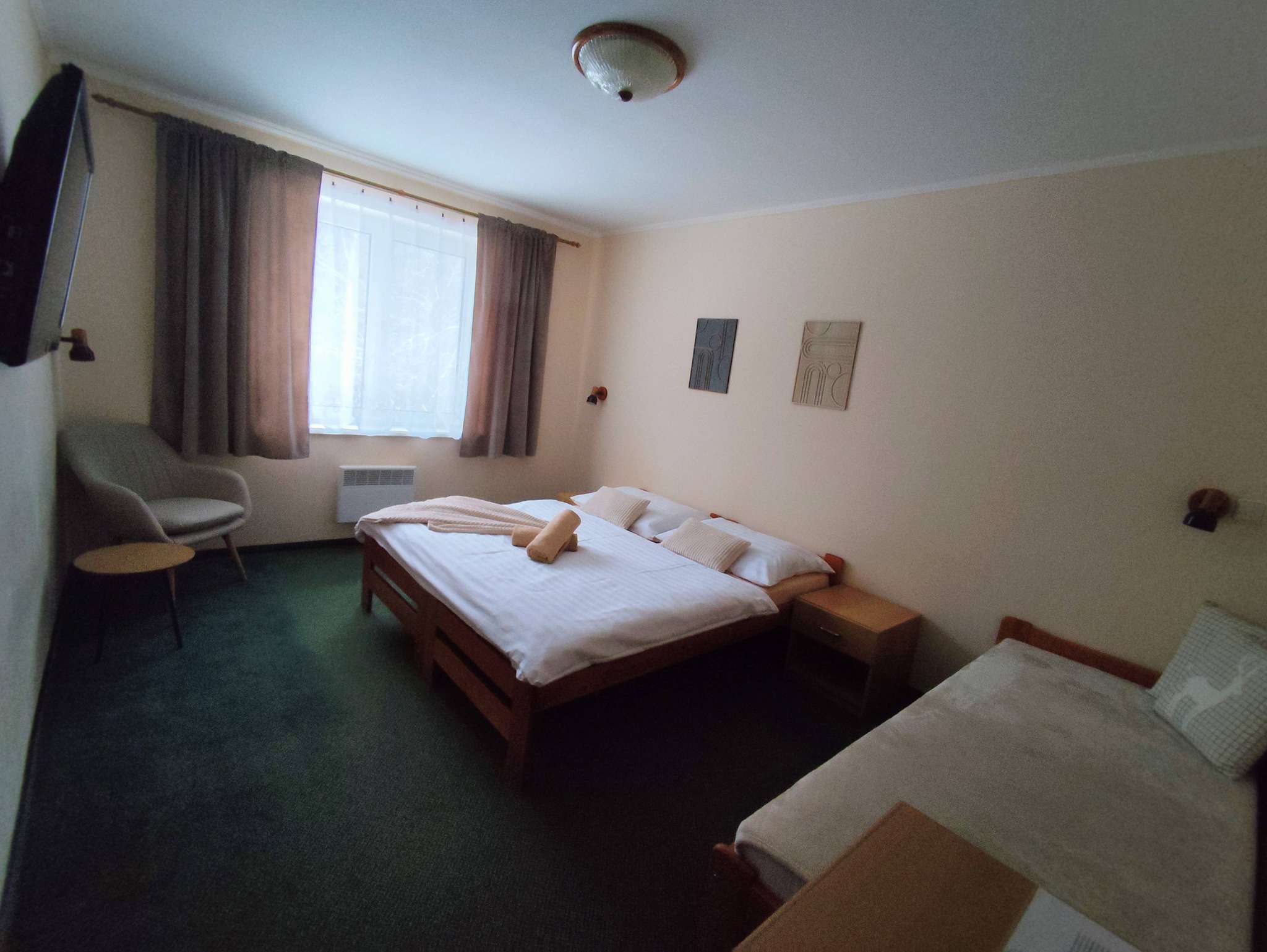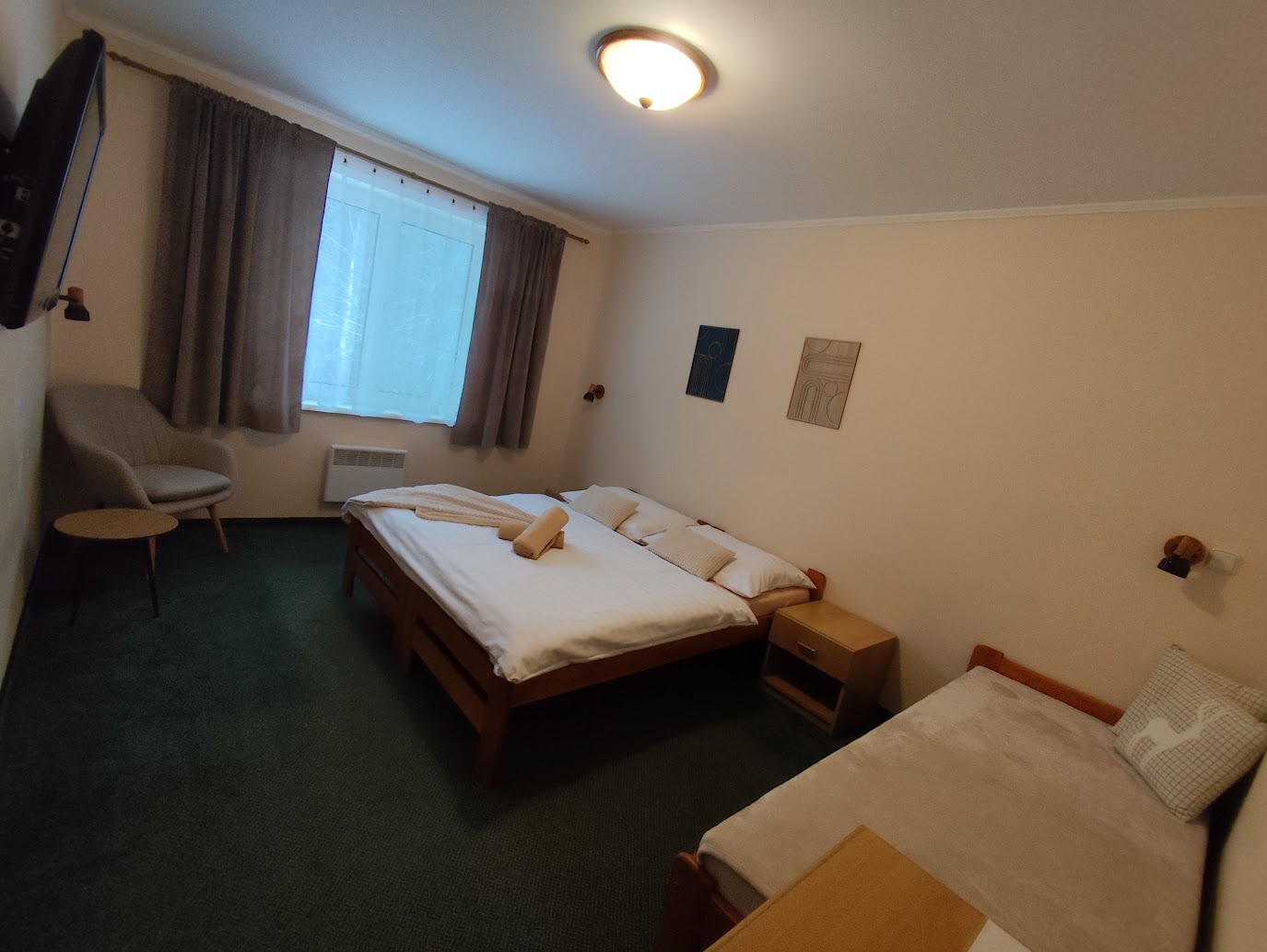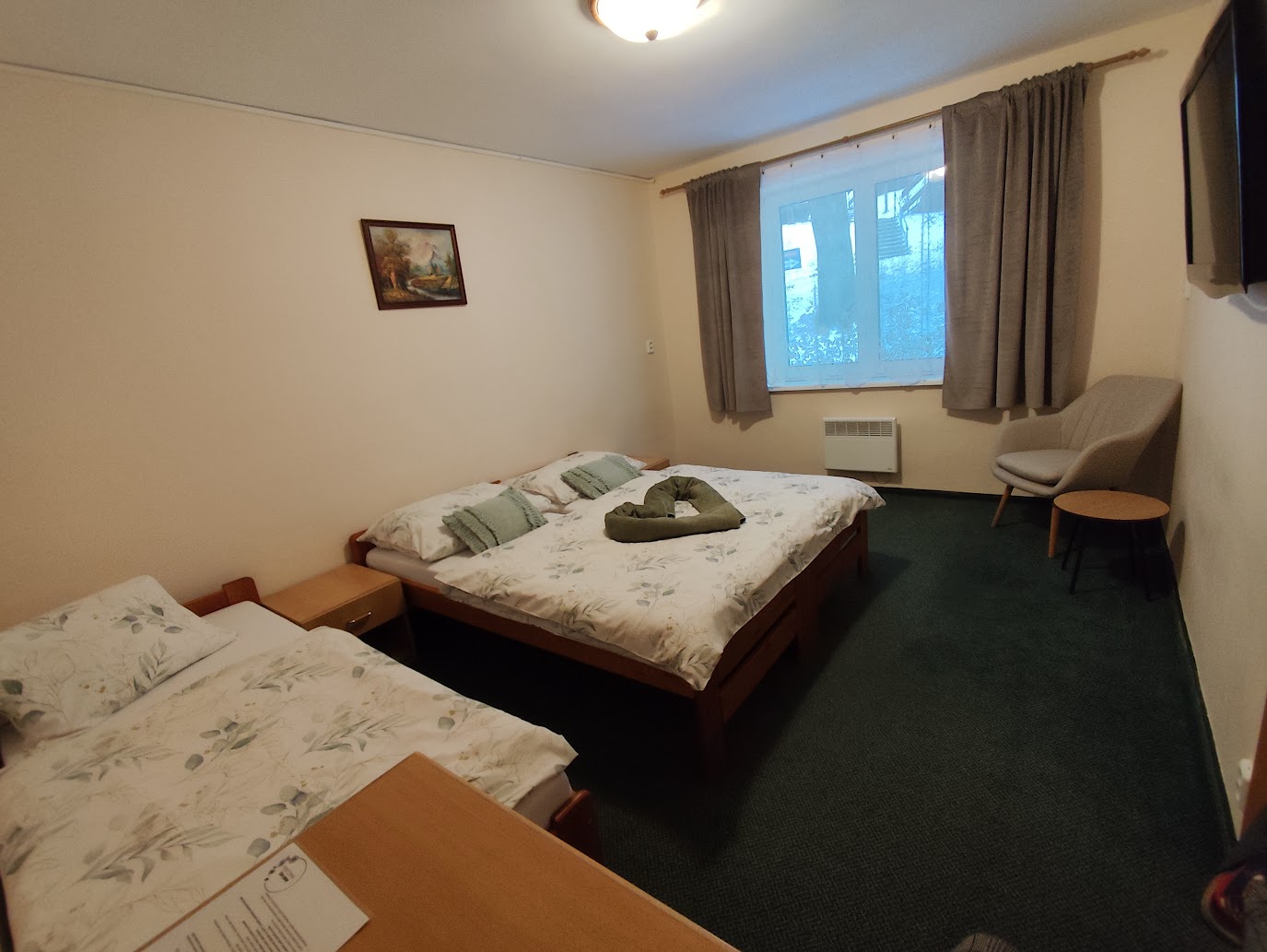 Ubytovanie: Ubytovanie poskytujeme v hlavnej budove s kapacitou 84 lôžok. Izby sú 2,3,4 lôžkové, s vlastnou kúpeľňou. Sú čisté, teplé a majú dostatok miesta.